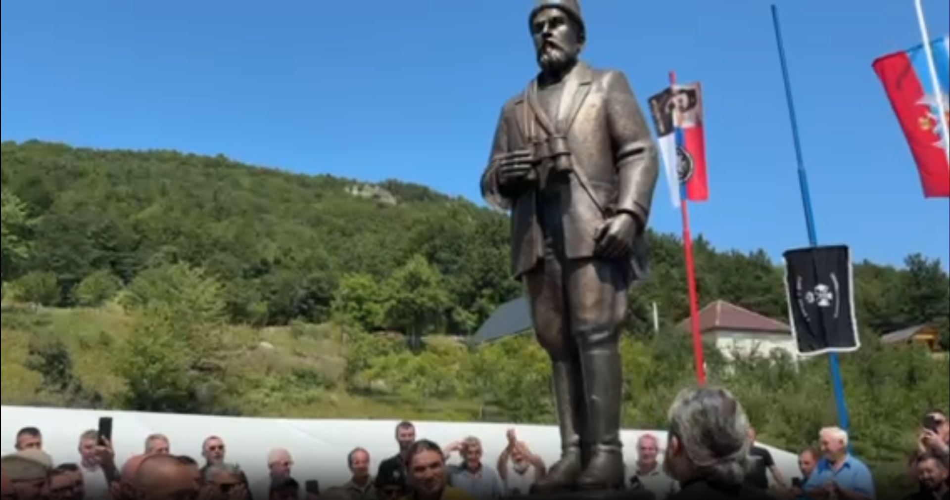 Горње Заостро, 8. августа 2025: Митрополит Методије открива споменик војводи Павлу Ђуришићу. Фото: Принт скрин