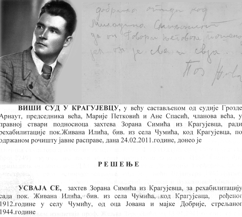 На овом месту доносимо избор фотографија жртава комуниста у Крагујевачком округу. Скоро све жртве са ових фотографија су рехабилитоване решењима Вишег суда у Крагујевцу. Фотографије из другог дела галерије су из књиге ”Пут до пакла и натраг” (аутори Зиројевић Видаков Жељко, Војиновић Којичин Милош, издавачи Окружни одбор Субнора Шумадије, Удружење рехабилитованих Крагујевац, Крагујевац 2011).