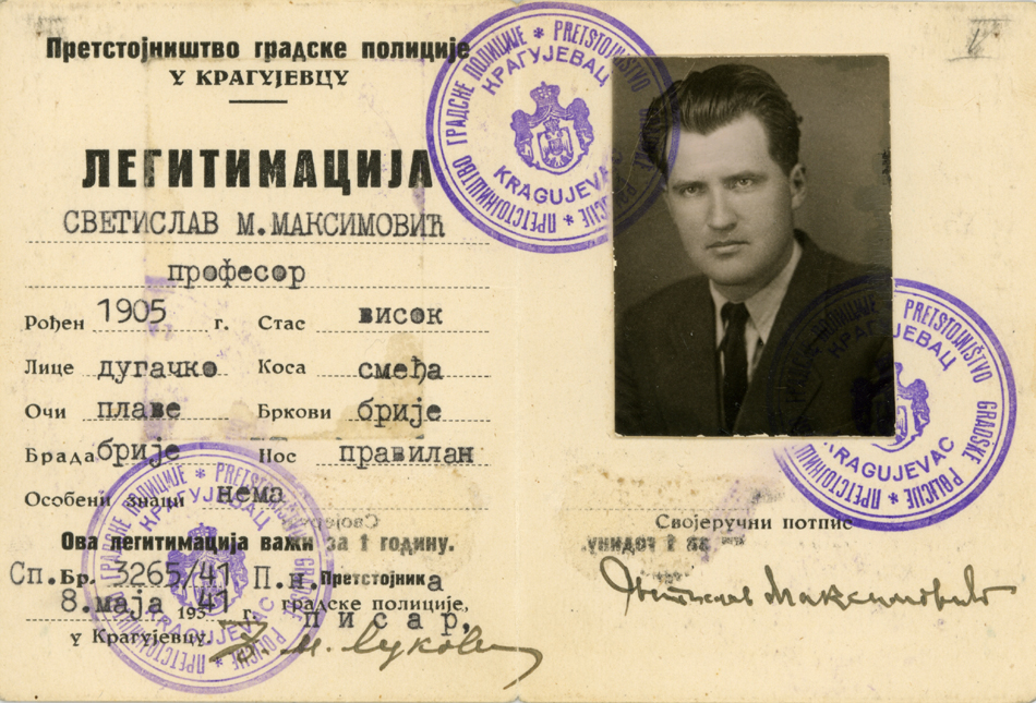 Легитимација професора Светислава Максимовића