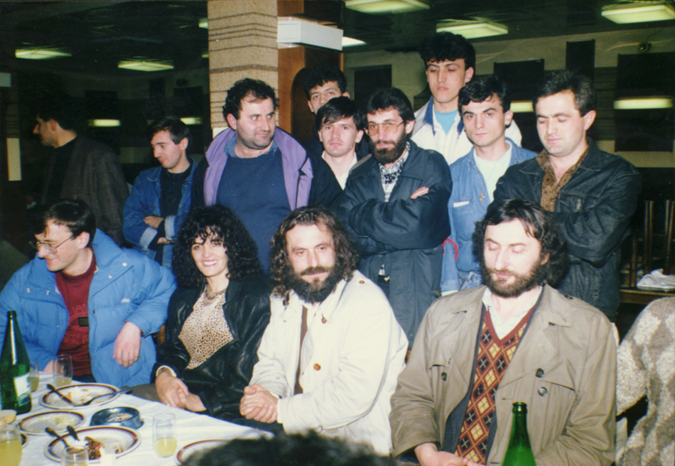 - Студентски дом у Крагујевцу, 27. или 28. фебруар 1990, увече. Ово је било после првог опозиционог митинга у Србији од 1945. Одржан је на игралишту ПМФ-а, било је неколико хиљада људи. Окупљање је, као, тада било слободно, али само када се поднесе захтев милицији – са печатом. А сви печати су били у рукама комуниста. Осим печата ”Погледа”, листа студената крагујевачког универзитета… Тако сам се потписао, ударио печат и пријавио скуп Српске народне одбране. После смо вечерали у студентском дому. С лева на десно: Милослав Самарџић, Даница и Вук Драшковић, човек из СНО, из Пазове, Жорж