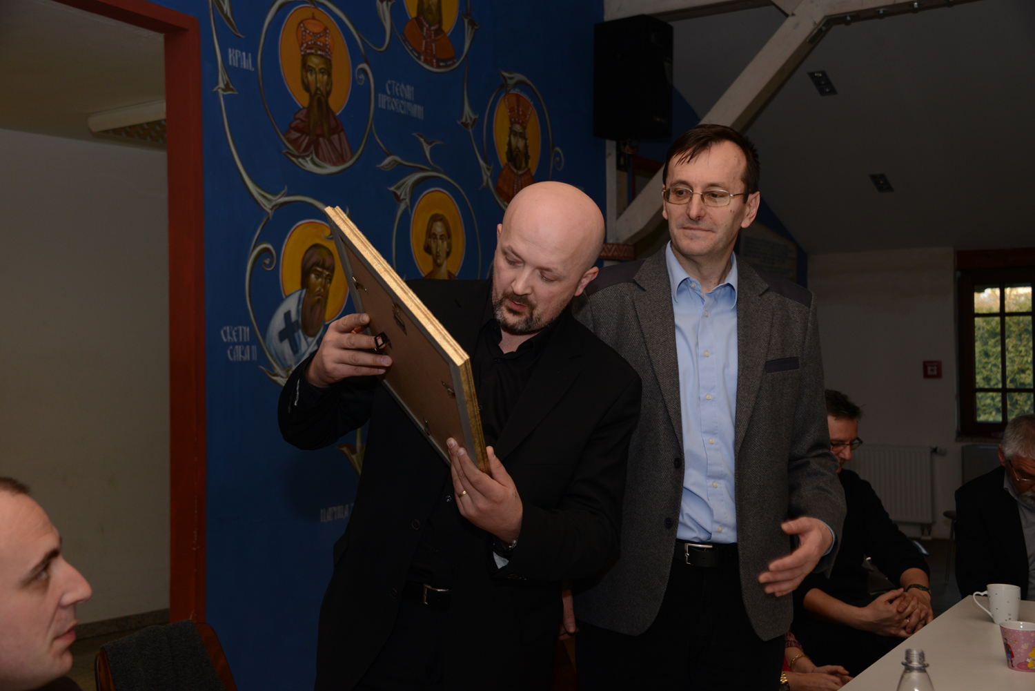 - У обиласку Манастира Копорин крај Велике Плане, 24. априла 2015: Милослав Самарџић и мр Бојан Крстић. Обилазак Манастира је део фестивалске манифестације