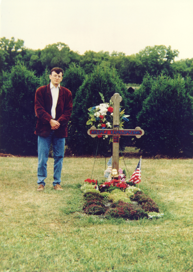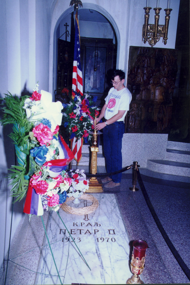 - На гробу принца Андрије, испред Нове Грачанице, Либертвил, 1991. Од свих Карађорђевића, емигранти су највише хвалили принца Андрију, који је почетком те године погинуо под неразјашњеним околностима (угушио се у ауту, у гаражи, од угљендиоксида из ауспуха…)