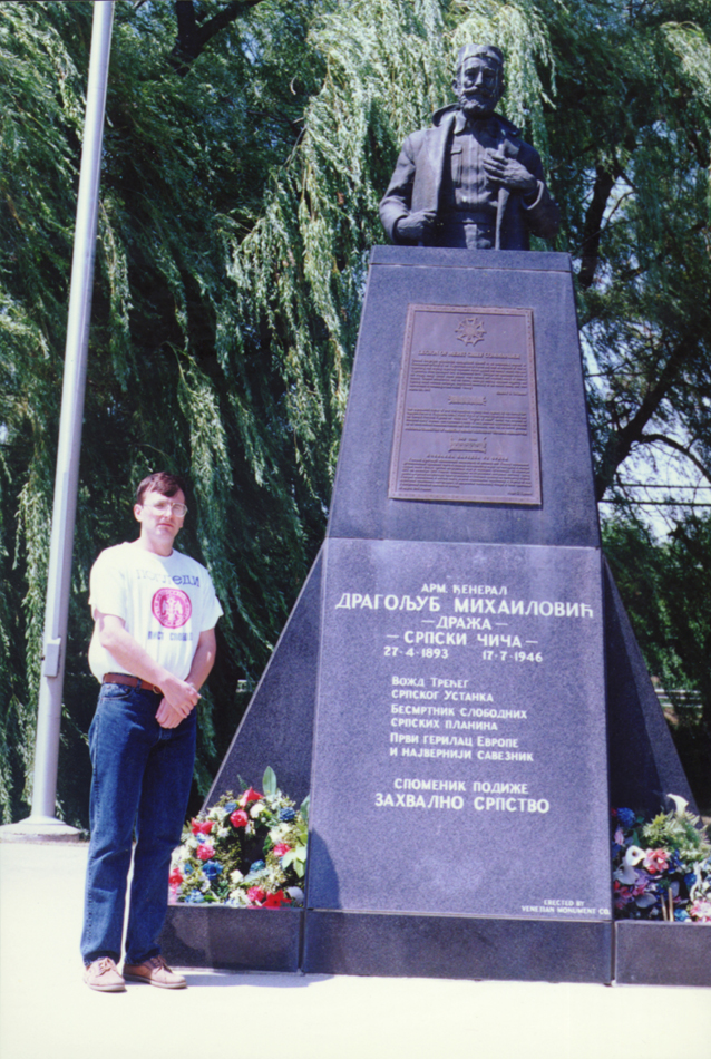 - У Грошници код Крагујевца, 2003. Са Петром Раданом, његовом супругом Милицом, и пензионисаним свештеником који је пронашао гроб његовог стрица. Петар је био у Грошници и Крагујевцу пред рат, као дечак, у рату је био омладинац Динарске четничке дивизије, сада је познати емигрант у Канади