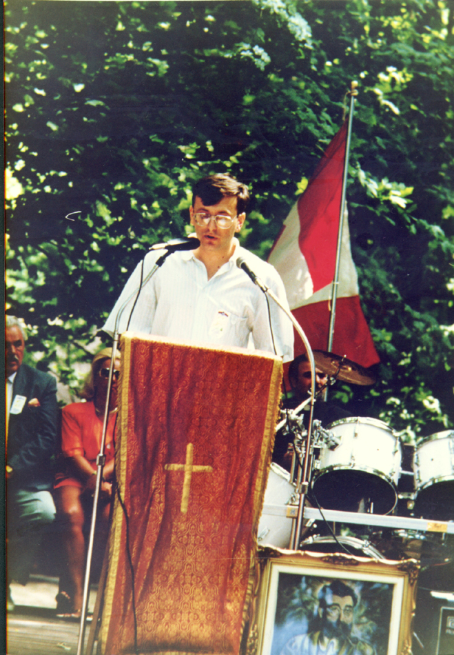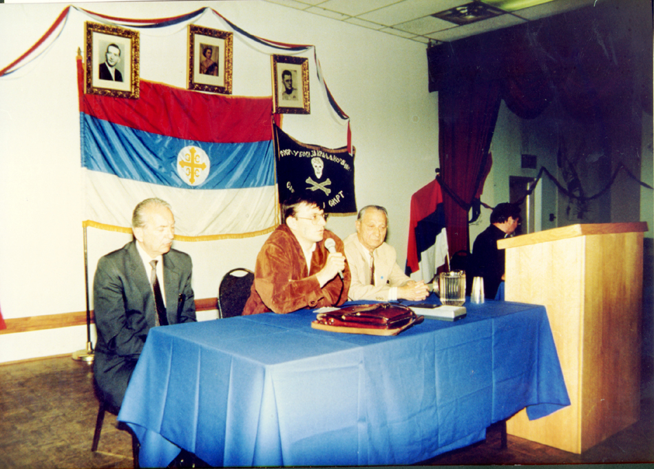 - Трибина у Манастиру Св. Симеон Мироточиви у Чикагу, августа 1991. Било је око 400 људи. У средини је Душко Ћурчић, који је као дечак био четнички курир