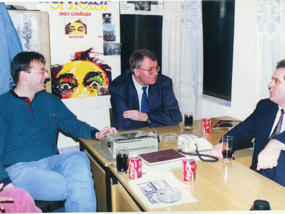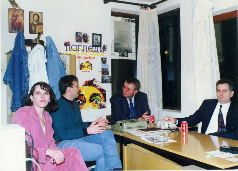 - Истом приликом. Први с десна седи Веран Матић. Био је уредник Радија Б-92, тада локалног, и наш сарадник. Моје колеге и ја више пута смо гостовали на том радију. После су се ствари мало промениле…