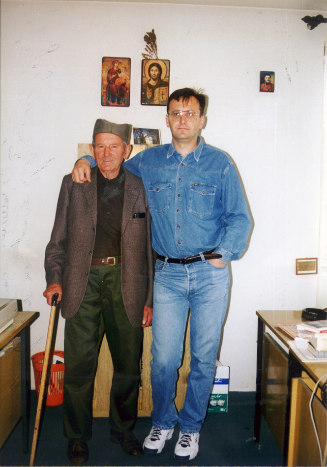 - Пајазитово, 1998, испред цркве коју су подигли четници. Милослав Самарџић и потпоручник Гарде Божа Панић из Пајазитова (”четничка тврђава”)