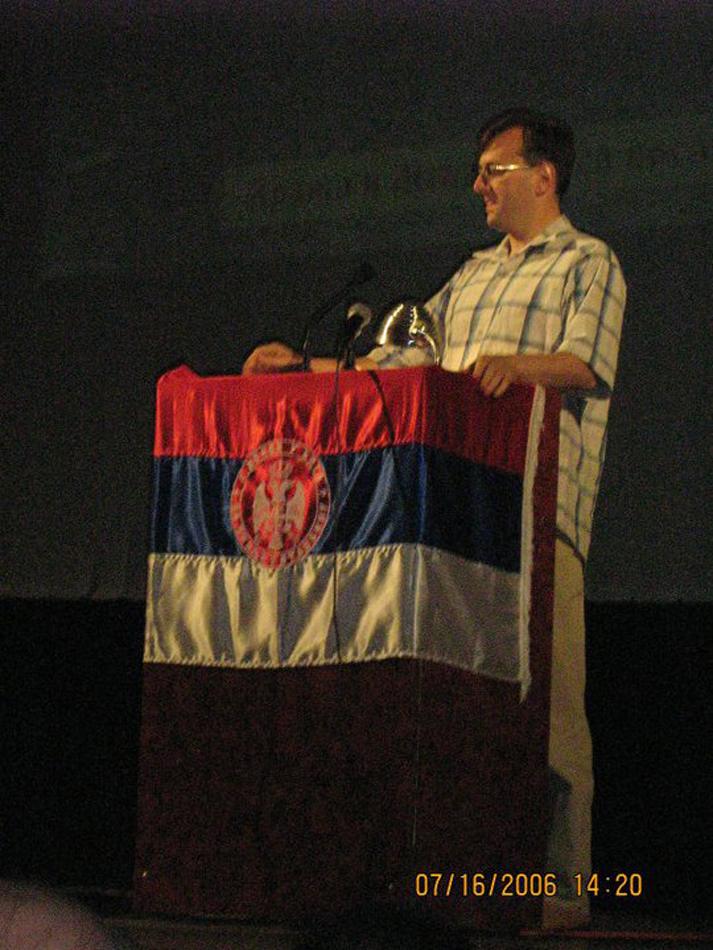 - Београд, 2009, са једне трибине у организацији Српске либералне странке. Тада су организовали више трибина и округлих столова на којима сам учествовао. Снимио је неко из публике