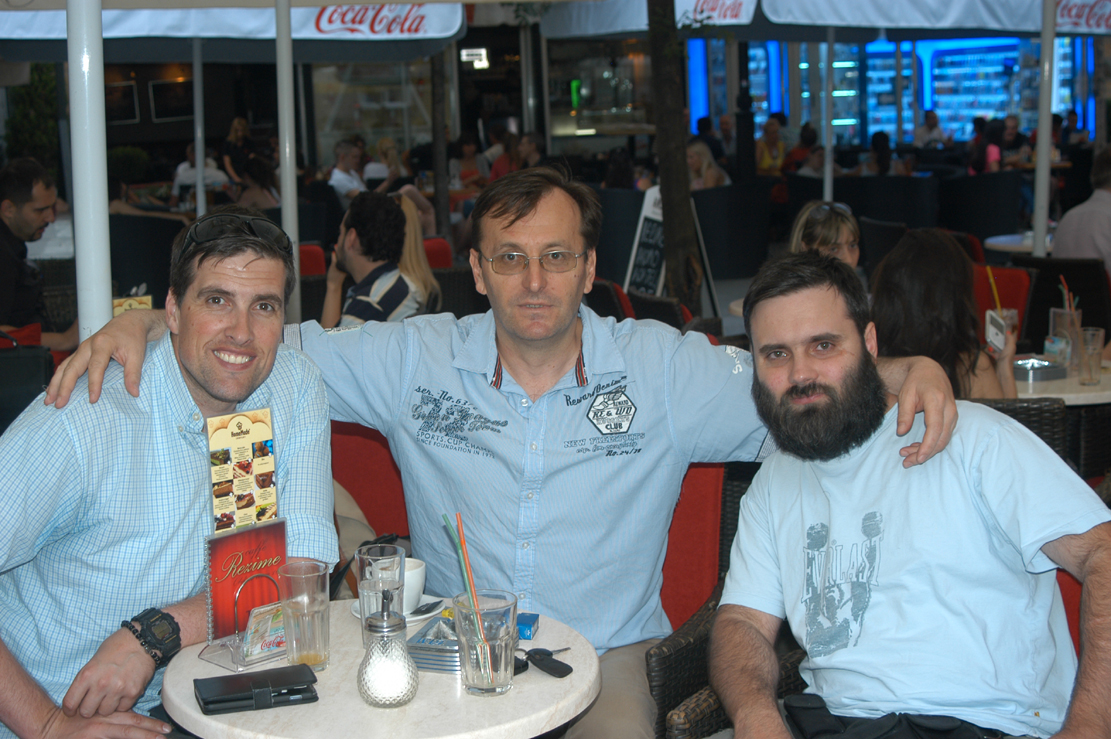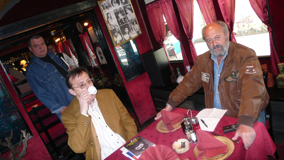 - Ниш, кафана ”Синђелић”, 2001, са капетаном Радомиром Петровићем Кентом, приликом његовог јединог повратка у Србију