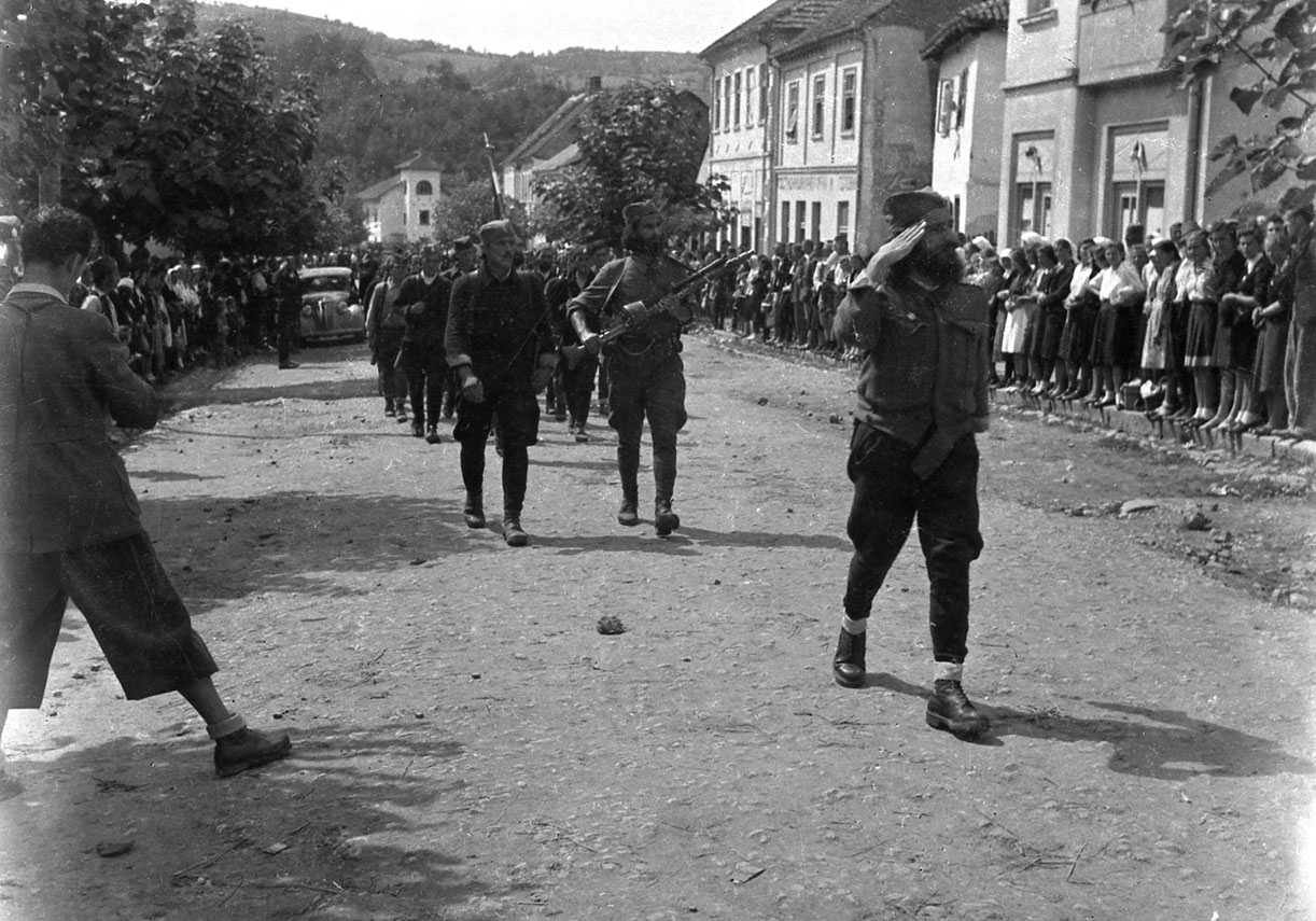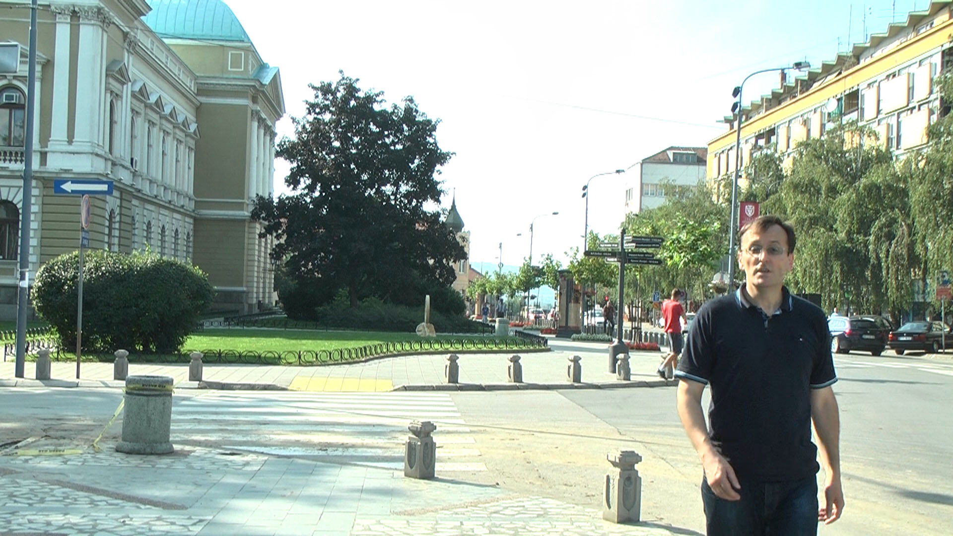 - Са снимања за документарац, Крушевац, августа 2014. Лево је зграда суда, која се види на слици од 14. октобра 1944, када су грађани изашли да поздраве ослобођење града
