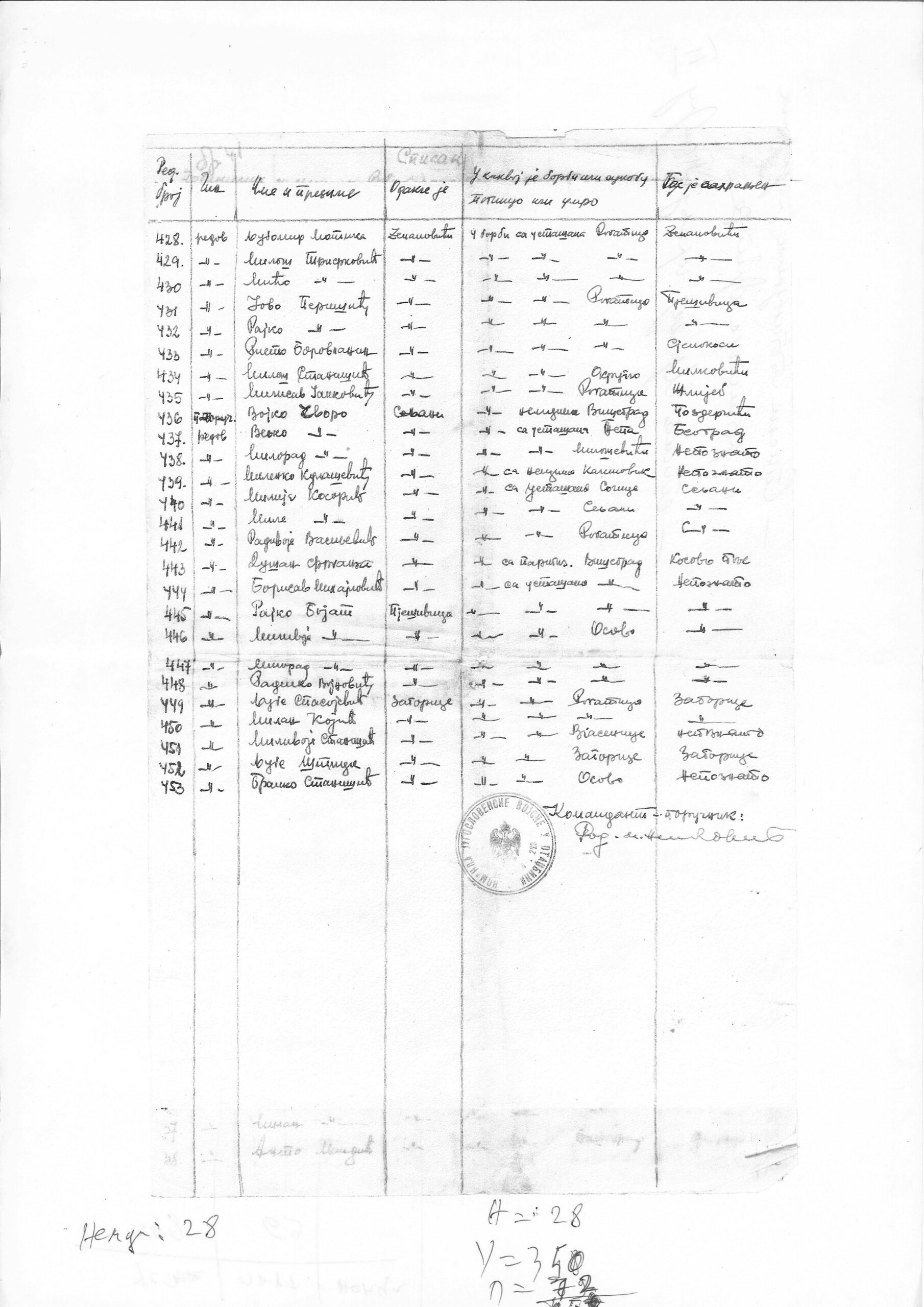 Извештај је потписао командант Рогатичке бригаде, поручник Радомир Нешковић. Укупно је уписао 453 имена погинулих четника. Бригада је имала велики ратни пут – од Книна на западу, до Херцеговине и Вишеграда на истоку. Из колоне о борбама и местима тих борби, види се да се Рогатичка бригада највише борила против усташа. Њених 350 четника погинуло је од усташа, затим 72 од партизана и 28 од Немаца.