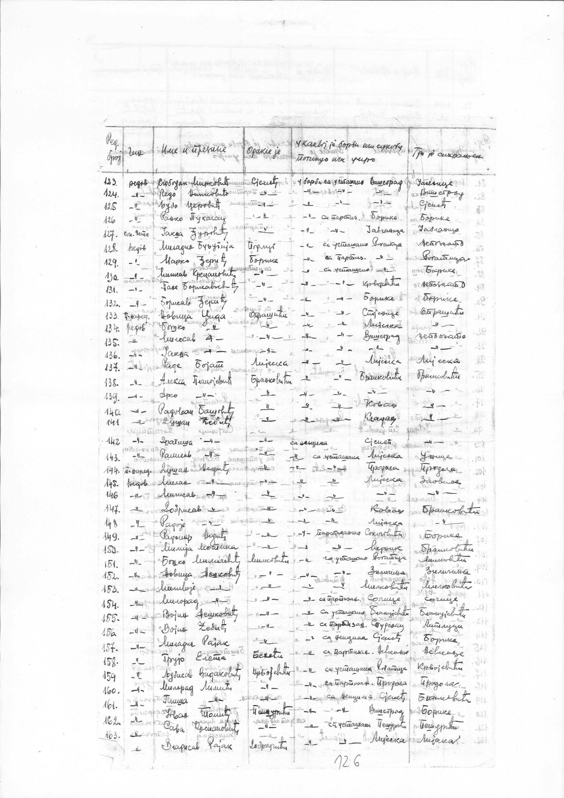 Крајем 1944. године генерал Дража Михаиловић наредио је свим командантима бригада да саставе спискове погинулих у дотадашњим борбама. Прописао је да се унесу следећи подаци: Име и презиме погинулог, одакле је, у борби против ког непријатеља и где је погинуо, као и где је сахрањен.