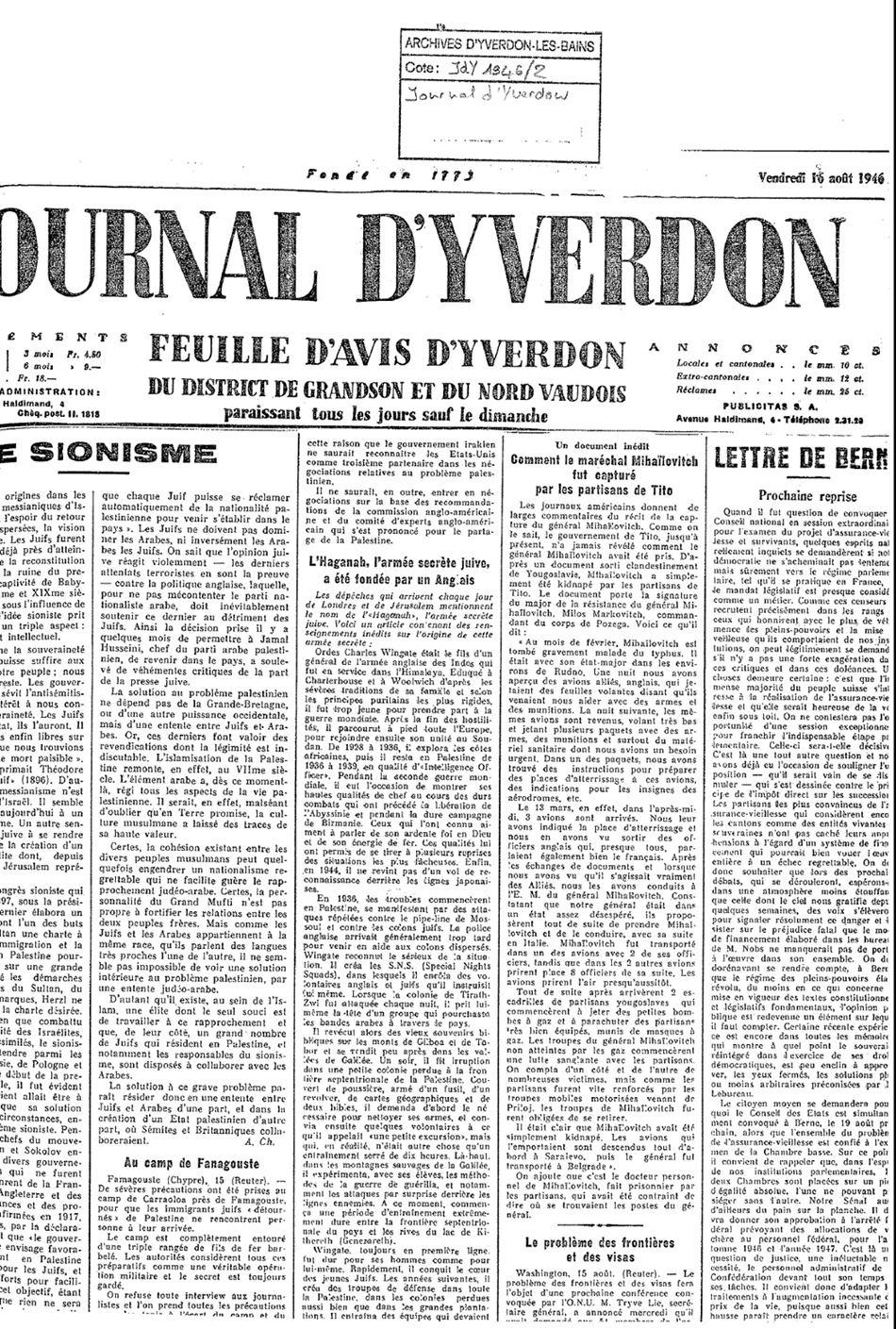 Писмо које је мајор Марковић успео да протури преко границе објавио је швајцарски лист ”Л Журнал Д`Ивердон” 16. августа 1946. године, под насловом ”Како су Титови партизани ухватили генерала Михаиловића”. Ево интегралног чланка из овог листа:
