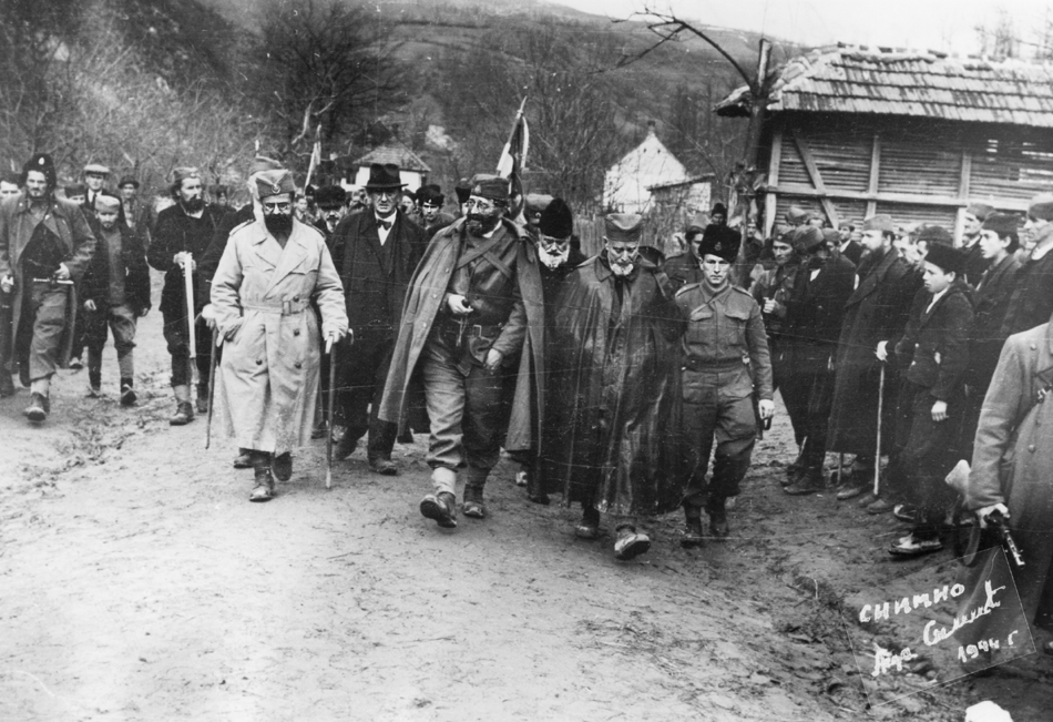 Le général Mihailovic avec les habitants du village de Vranjska en 1943