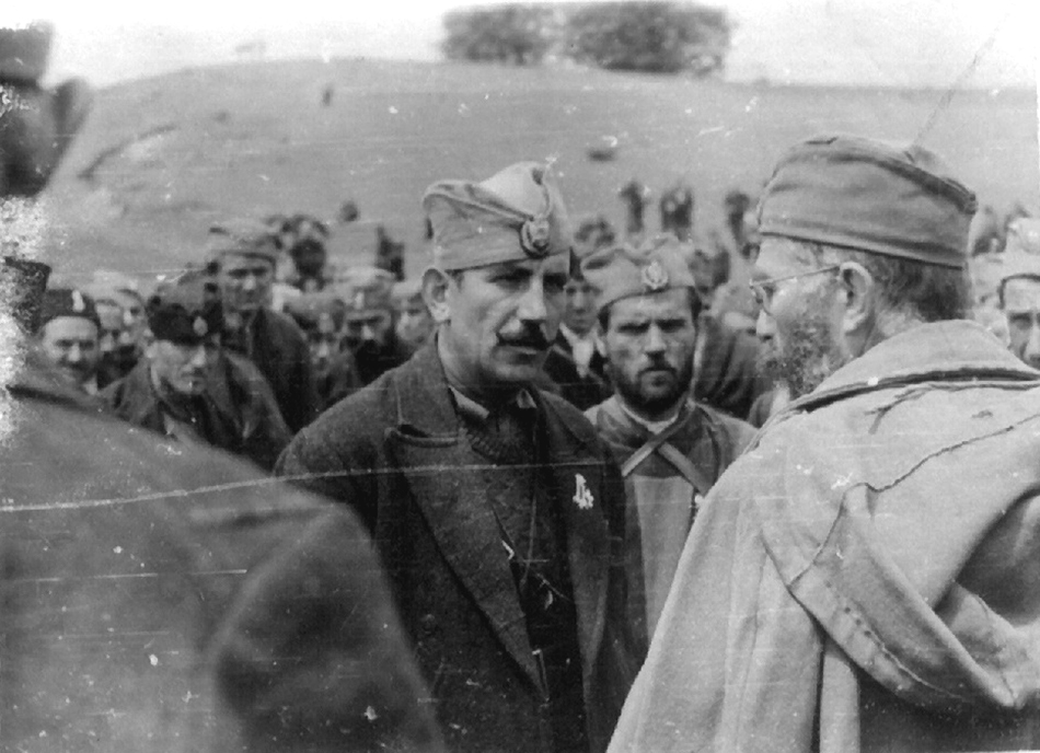 Le général Mihailovic pendant le service religieux de sa fête du Saint patron (Saint Nikola) le 19 décembre 1943