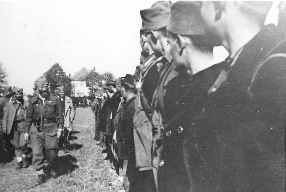 Septembre 1943. Le général Mihailovic passant en revue un détachement du Corps du Cer