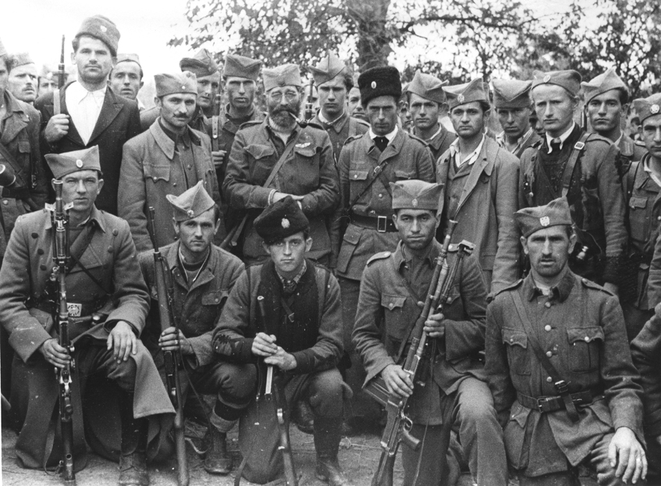 Mai 1944, sur la Ravna Gora.. Le général Mihailovic avec des officiers