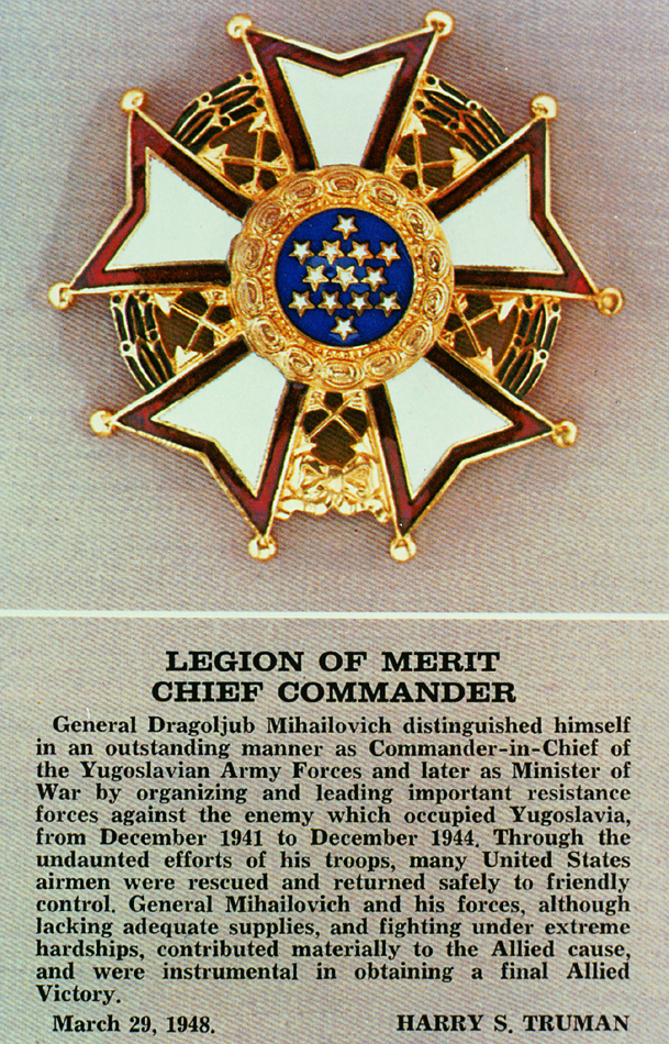 La Legion of Merit grade de Commandant en chef pour Dragoljub Mihailovic