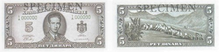 Exemple de billets de banque que les britanniques avaient imprimés début 1943 lorsqu’ils planifiaient un débarquement par la mer Adriatique sur la cote Dalmate et, en collaboration avec les Cetniks, libèrent le pays.