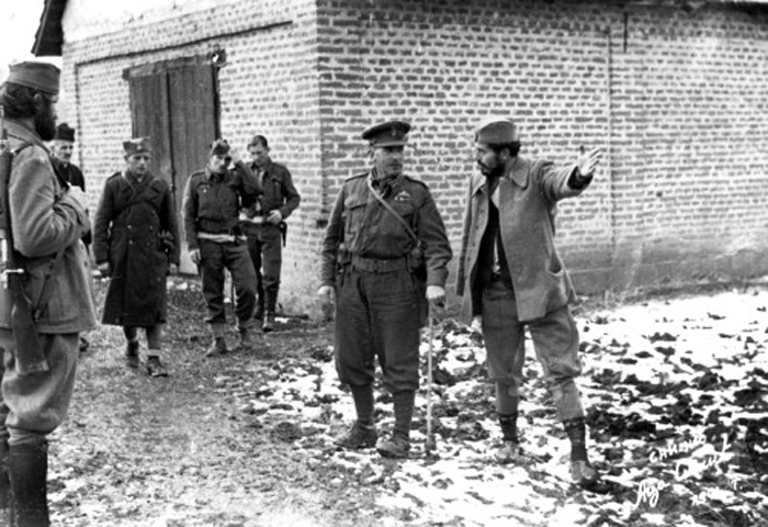 Le capitaine Predrag Rakovic, commandant le 2ème corps d’armée de Ravna Gora avec le chef de la mission militaire Alliée, le général britannique Charles Armstrong dans les environs de Tchatchak en 1943.