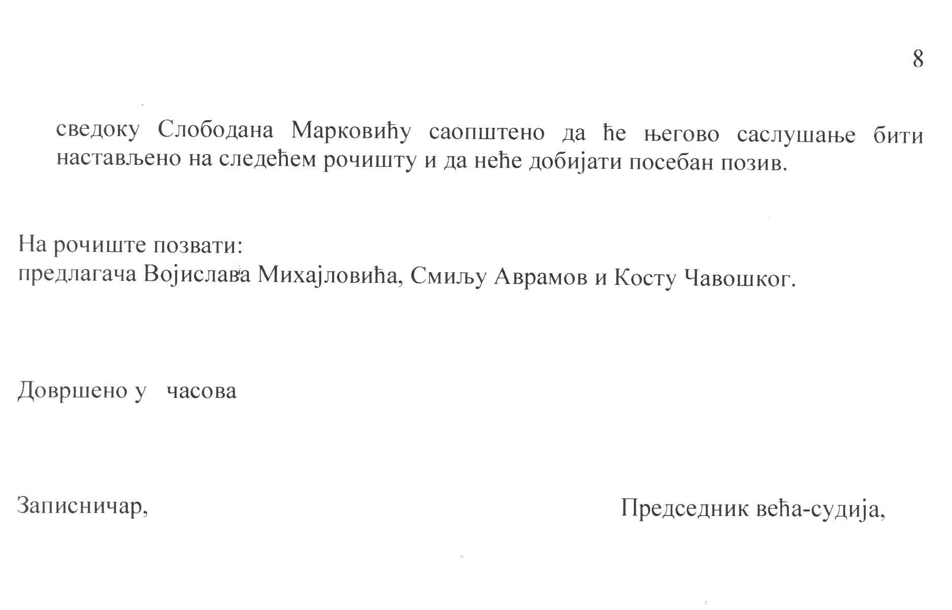 Записник са рочишта од 30. новембра 2011. 14/03/2013 Сва документа уступио нам је Српски либерални савет. Записник са рочишта од 27. септембра 2011. 14/03/2013 Записник са рочишта од 27. јануара 2012. 14/03/2013 Share this Related Posts Процес рехабилитације Ивањица: И даље без Дражине улице 30/07/2020 Процес рехабилитације Војска Србије први пут на Равној Гори: Историјско салутирање 16/06/2018 Процес рехабилитације Решење о Дражиној рехабилитацији 10/07/2015 Процес рехабилитације Одјеци Дражине рехабилитације: Индоктринација уместо науке 10/06/2015 Do not miss Процес рехабилитације Ивањица: И даље без Дражине улице 30/07/2020